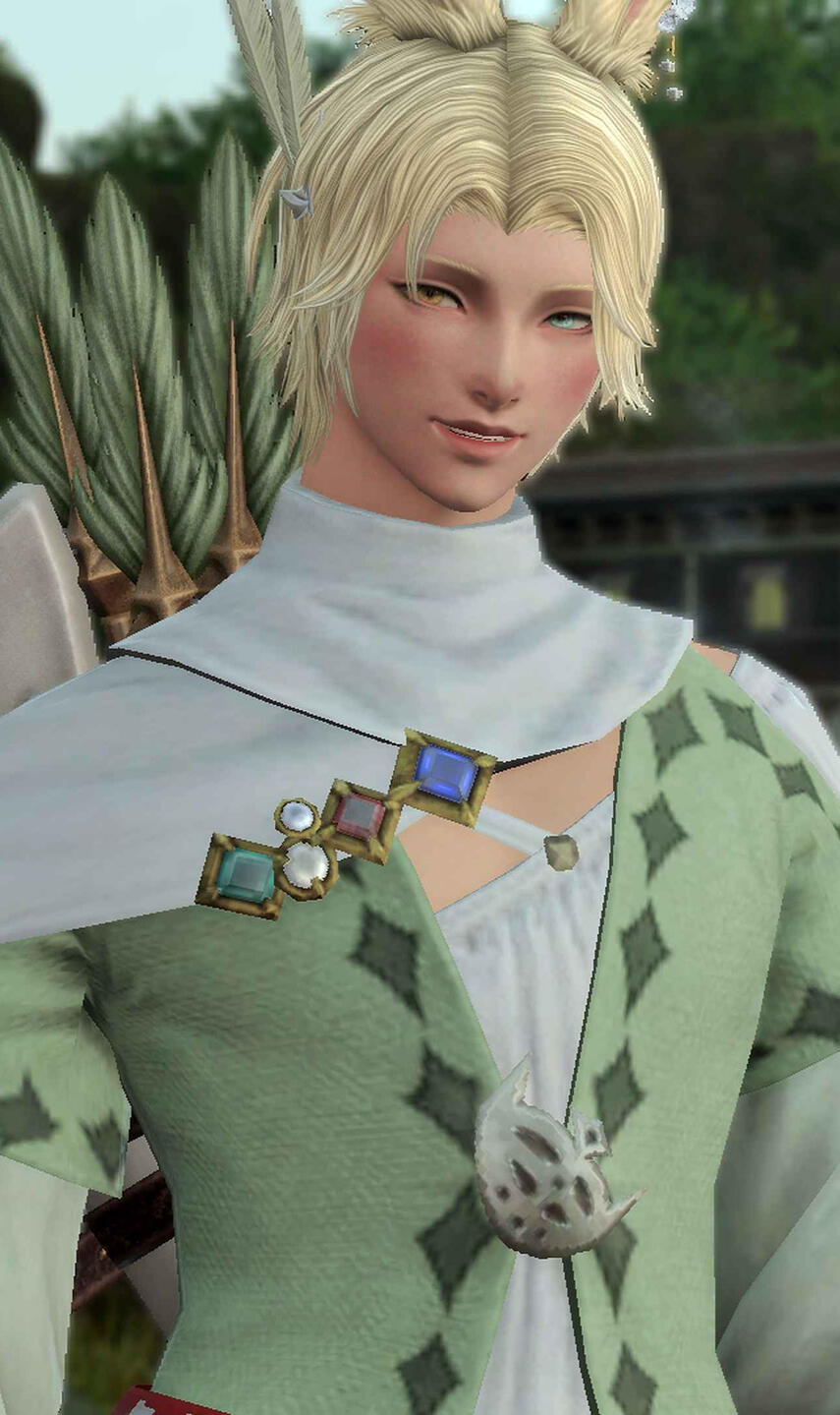 Arriving in Gridania from the initial docking in Thanalan, Stjer set out beneath the Shroud's canopy at Miounne's direction to begin making a name for himself. Taking every little odd job and fetch quest, he soon built a reputation as one of the friendliest and most pleasant hires and adventurers on this side of Eorzea. Eventually, this reputation blossomed into recognition by the Seedseer herself, and with her blessing, Stjer became Gridania's emissary, tasked with delivering letters to reform the alliance that the city-states once had. And with new cities to tread, new work came pouring in.Even the jobs other adventuring parties could not succeed in, Stjer took with the help of the roegadyn marauder who came back to Eorzea with him, and the contacts he had for these sorts of forays-- a pleasant conjurer and a little spitfire of a thaumaturge. The party was quite successful together, a budding team that quickly became a well-oiled machine, able to take on even the most dangerous of jobs. It was good enough work to afford the occasional inn rest and good meals, and enough for Stjer to both enroll and excel in the culinarian's guild after making his way into Limsa. His passion for cooking and the new knowledge that fishing could be done not just for necessity, but also for enjoyment, kept him quite busy in the rare moment of down time he was afforded.After about a year of wandering and building a name for himself, the Echo made itself known to Stjer-- and, by extension, the Scions-- bringing the two together towards a greater goal than the simplicity of adventuring. Taking on the title of official Scion, Stjer also took on all of the burdens with it: the catalyst that set the massacre of the Waking Sands in motion, the blade of light meant to cull the primals, the only opposition to the ascians capable of drawing their attention. Just as swiftly as these weights settled in, so, too, did the mask of pleasant placidity settle on the previously excitable veena's features.Now with the weight and burden of a hero upon him, Stjer became, in true, The Warrior of Light. No longer some better-than-average adventurer, the young viera of only, now, 27 summers carried the weight of the entire star upon his shoulders...a duty that demanded the sacrifice of closeness he might otherwise wish for. For, he learned quickly, to love as a hero was to invite pain...and invite a target for forces set on destroying him.